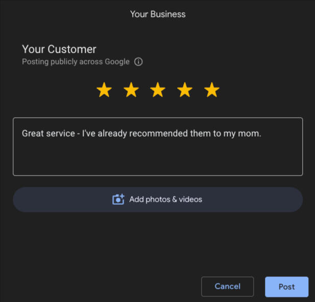 We make it simple to collect reviews so new customers find you first in traditional and AI searches.Currently in private beta.